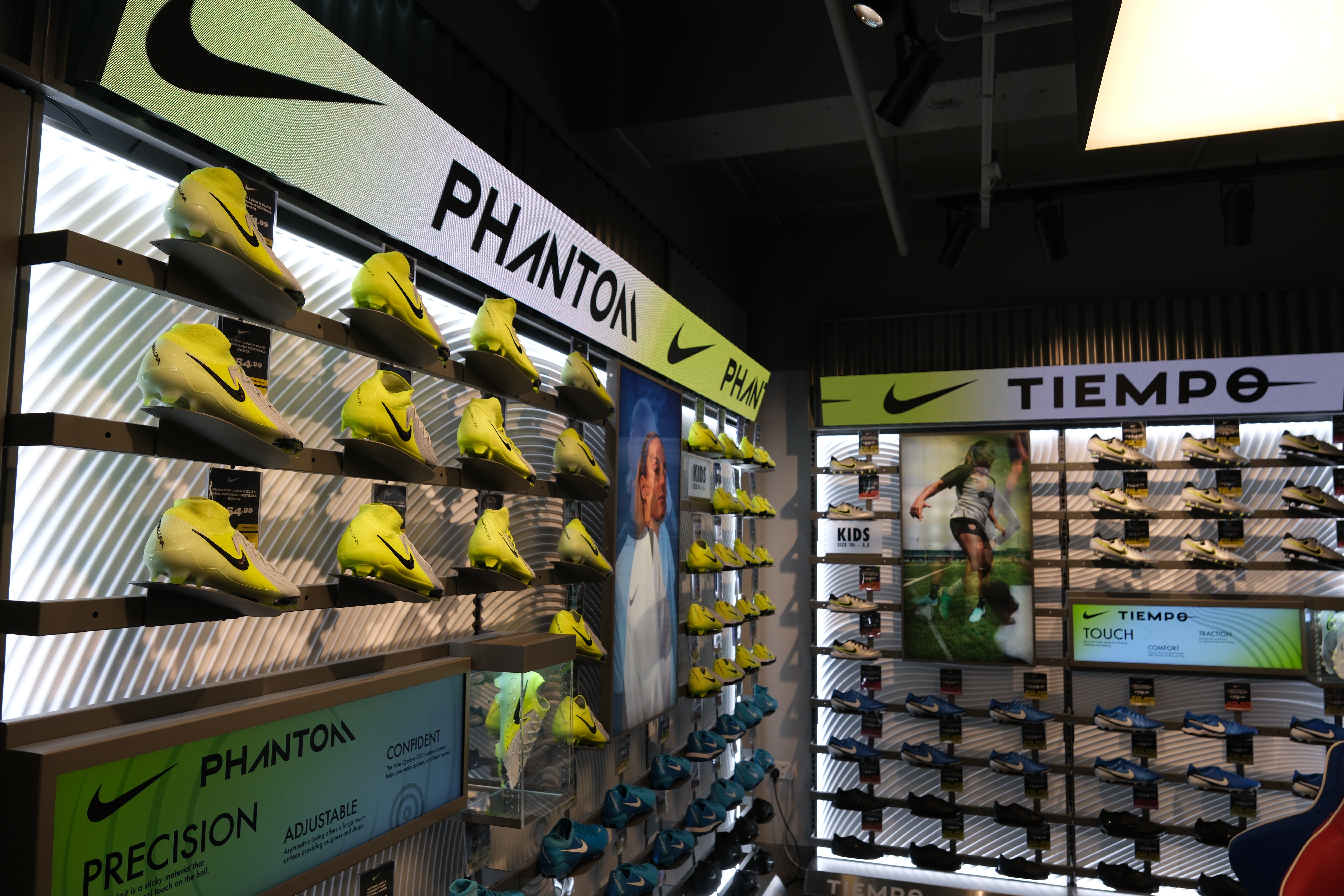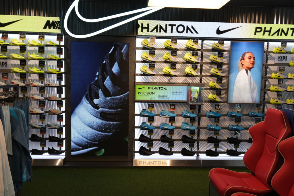 To elevate their football category, Nike partnered with IUF to transform traditional boot walls into immersive digital showcases. LED tickers in two sizes (2250mm and 3500mm) stream campaign content, while a 1000 x 2000mm 1.9mm LED screen delivers high-impact visuals through seamless, integrated hardware. Paired with 37” stretch LCDs that highlight new boot drops, this setup creates a flexible, future-ready display platform that turns Nike Football into a key in-store destination.